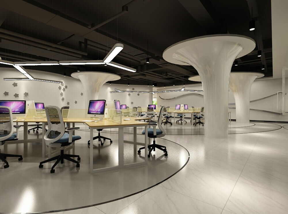 • 人工照明要“聰明”: 拒絕慘白一片的“日光燈管”!工位用防眩光、亮度可調的LED面板燈;協作區用柔和暖光;重點區域(前臺、展示墻)用射燈點綴。智能調光系統更香!